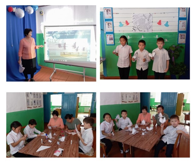 В это день и в нашей школе совместно с сельской библиотекой проведены литературный час «Белые журавли памяти» и мастер – класс по изготовлению белых журавлей, своими руками в знак уважения погибшим.